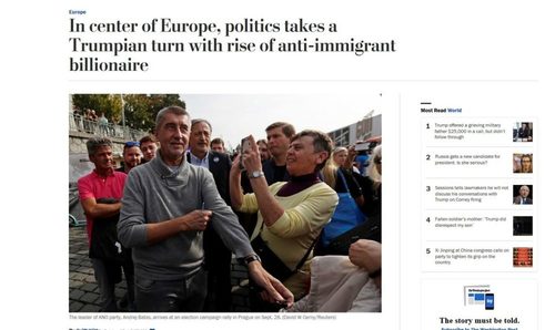 By Sunday, the Czech Republic may have a new leader, billionaire Andrej Babis. Writes The Washington Post, Babis "makes a sport of attacking the European Union and says NATO's mission is outdated."