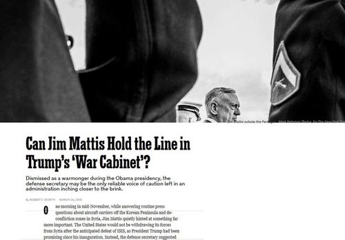 Gen. James Mattis, the secretary of defense, appears to be the last man in the Situation Room who believes the Iran nuclear deal may be worth preserving and that war with Iran is a dreadful idea.