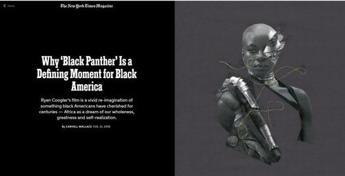 "We were making a film about what it means to be African," Coogler says. "It was a spirit that we all brought to it, regardless of heritage. The code name for the project was Motherland, and that's what it was. We all went to school on Africa."The movie is being treated as a rebuke to white America and the “present moment” (i.e. President Trump) [How the Quietly Radical ‘Black Panther’ Took Over Hollywood, by Tony Karumba, Politico, February 15, 2018].[The ‘Black Panther’ Revolution, by Josh Eells, Rolling Stone, February 18, 2018]