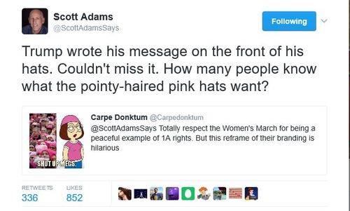 One possible option for American women who are as dissatisfied with their lot as last weekend's pussyhatted marchers would be to convert to Islam. Life for women under Sharia law is so much more enriching and fulfilling than is the case in the patriarchal oppression of Judeo-Christian society.