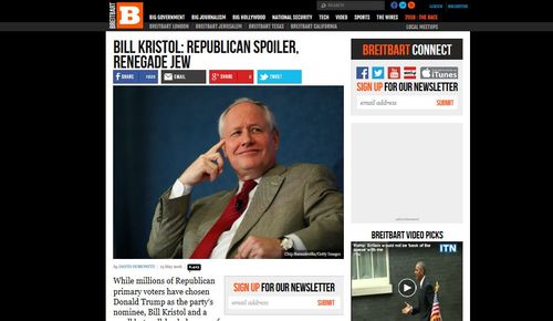 Not exactly Der Sturmer. Reading the responses to this piece, however, one would think Breitbart had committed a blood libel against Kristol.. A few examples from the Left: