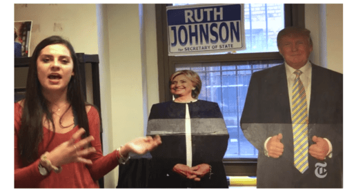 The NYT story focused on University of Michigan College Republican president Amanda Delekta. After the election, UM students held “evening vigil on campus—to mourn the results—and her biology teacher suspended class on the assumption. . . that students would be too upset to focus.” One Muslim student who attended the vigil