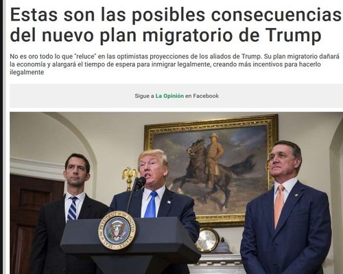 President Trump announced his endorsement of the bill on August 2, appearing at a press conference with Senators Cotton and Perdue. Stephen Miller also gave a masterful performance in which he explained and defended the Act. That same day, U.S. based Spanish-language media were bashing the RAISE Act. They keep a close watch on immigration policy!