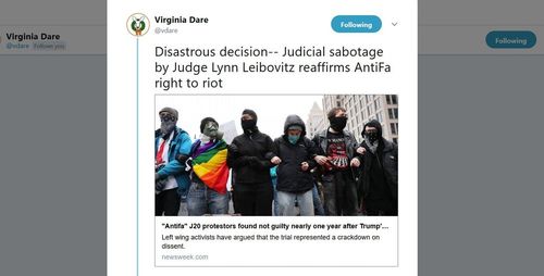 ['Antifa' Not Guilty: First of J20 Protesters Acquitted Nearly One Year After Trump's Inauguration by Michael Edison Hayden, [Email Him]Newsweek, December 22, 2017. Emphases added],
