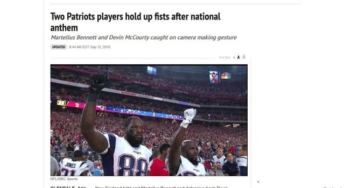 Since I wrote last weekend, black players from the Kansas City Chiefs, Miami Dolphins, New England Patriots, San Francisco 49ers, Los Angeles Rams and the Denver Broncos joined Colin Kaepernick to protest the American national anthem—and some of the players didn’t just take a knee, they raised a defiant black power fist into the air. The big question: would this impact viewership for the NFL’s opening weekend games? [Black Power Fists Were Raised During NFL’s Opening Weekend, Spin.com, by Brian Josephs, September 12, 2016]