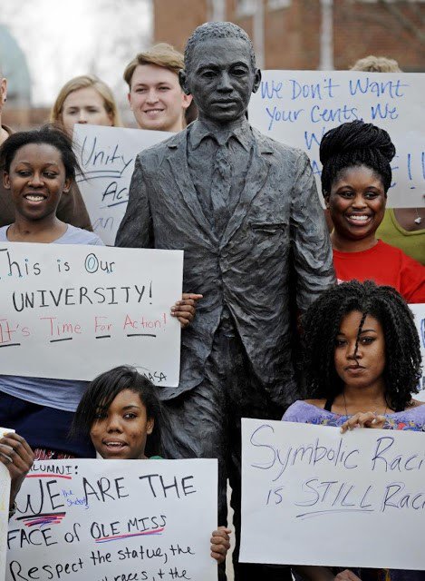 (Note the weird language used by the Daily News reporter—the Meredith statue had been “defiled,” “desecrated,” and “vandalized.” To my knowledge, the statue was not damaged in any way. Nor am I aware of James Meredith having holy status.)