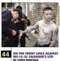 "[The tactical squad] photographs Pee-Wee and his various tattoos since he is unknown to the officers. They document his name and let him go. Surprisingly, the contact ends in a handshake, as do many of the others we would experience during our time with the police. While the UTO [Unidad Tactica Operativa] 'rolls big,' and carries enough ammunition for a prolonged firefight, they also show remarkable courtesy and respect to the citizens they come in contact with."[On The Front Lines Against MS-13: El Salvador's UTO, by Chris Barfield, SWAT Magazine, August 2005]