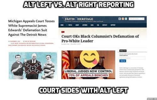 In other words, the facts don’t matter—even when the Main Stream Media outlet is apprised of them. This Michigan Appeals Court decision is shocking, not only in quoting Aesop to support the principle of “guilt by association,” but in going outside the record to refer to newspaper articles from the 1990s, when Duke, who has (like Patrick J. Buchanan, Alveda King and VDARE.com Editor Peter Brimelow) been interviewed on Edwards’s show, had already not been a Klansman for 12 years.