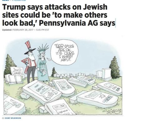 Since the election of Donald Trump in November, there have been almost 1,000 reported hate crimes targeting Muslims, Arabs, African-Americans, Latinos and other people of color. At this same moment, there have been terrorist threats against Jewish synagogues and community centers as well as the vandalizing of Jewish cemeteriesTrump’s election has created “safe spaces” for racists: Southern Poverty Law Center’s Heidi Beirich on the wave of hate crimes, by Chauncey DeVega, Salon.com, March 8, 2017