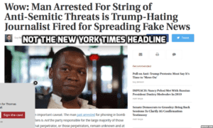 Bomb threats phoned in to Jewish Community Centers across the country caused a spasm of “Trump is not denouncing these fast enough” tweets. At around the same time, there were multiple cases of reported desecration of Jewish cemeteries, including the toppling of tombstones. All this was presumed to be part of an imagined Trump Effect: