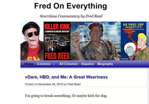 vDare, HBD, and Me: A Great Weariness, FredOnEverything.org, November 26, 2015 [Crossposted on Unz.org, which has comments.]