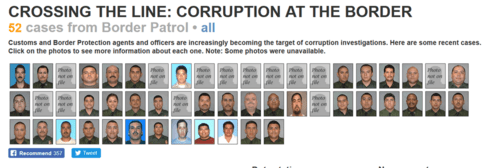 Well, there is evidence of disproportionate Hispanic corruption on the Border Patrol. This is from a report by the Center For Investigative Reporting (a generally Left-wing outfit) on corruption at the border. Their report is online at bordercorruption.apps.cironline.org.