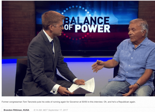In a recent interview, KUSA Colorado interviewer Brandon Rittiman asks former Rep. Tom Tancredo (thinking of running for Governor of Colorado)
