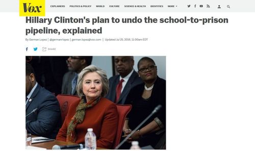 These are the guys the Democratic Party (Hillary was death on school discipline during the 2016 campaign), the Left, and of course organized minority activists like the NAACP and Al Sharpton, want back in schools. [Hillary Clinton's plan to undo the school-to-prison pipeline, explained, By German Lopez, Vox, July 25, 2016]