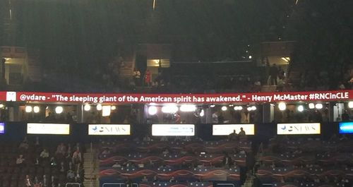 [2], The Sam Frizell headline is about some other group's Tweet being displayed in the Cleveland Arena where the RNC was being held—because the tweet included the hashtag #RNCinCLE, which also why our Tweet appeared on the RNC Jumbotron, causing Leftists to swoon—but Frizell does casually refer to us as white supremacist.