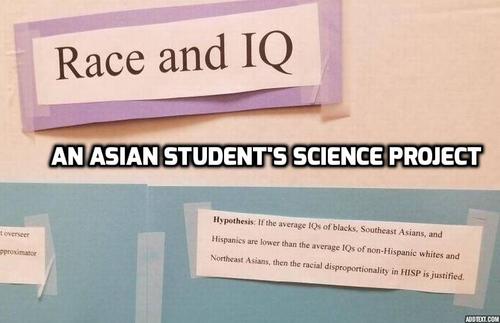 A student at a science fair did a presentation on race and IQ. The science, as an increasing number of people are admitting, is indisputable. But perhaps for that reason, teachers, reporters and administrators want to make sure no one is allowed to discuss it.