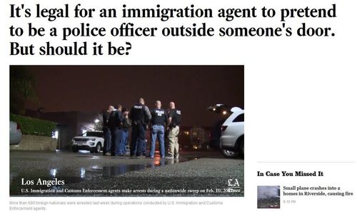 [It's Legal For An Immigration Agent To Pretend To Be A Police Officer Outside Someone's Door. But Should It Be?, by Joel Rubin, Los Angeles Times, February 21, 2017]