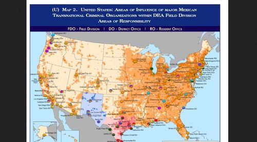 According to the DEA report, Mexican TCOs serve primarily as wholesale suppliers to the United States. There they rely on US-based gangs to distribute retail drugs. The report contains a color-coded map that shows the areas of influence of major Mexican TCOs in the US.