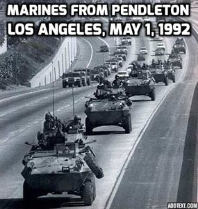 And since ICE is short-handed, redeploy available U.S. Border Patrol resources to the Los Angeles Basin. With the significant decline in illegal immigration over the border with Mexico, a large number of Border Patrol Agents (BPA) can be sent on temporary assignment to Los Angeles, perhaps 500 to 1,000, as was done during the Rodney King Riots [As Los Angeles Burned, the Border Patrol Swooped In, by Shereen Marisol Meraji, KQED, April 28, 2017]. Indeed, Garcetti is quoted as referencing the 1992 riots in the Los Angeles Times article above , but neglects to mention it was a massive show of force by U.S. Marines, USBP, and other Federal Agents which restored order.