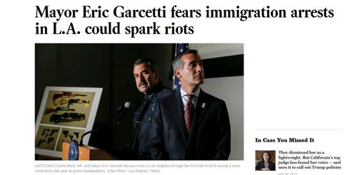 [Mayor Eric Garcetti Fears Immigration Arrests In L.A. Could Spark Riots, by Dakota Smith, Los Angeles Times, June 3, 2017]