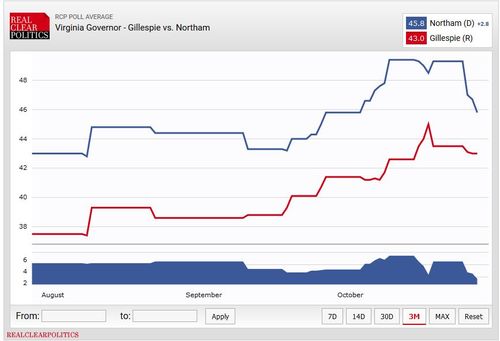 Of course, Gillespie has history against him. The opposite party of the one that wins the White House usually wins the governor’s race in Virginia.