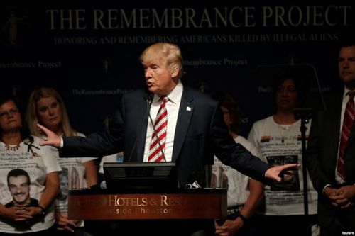 Maria Espinoza, National Director of The Remembrance Project and possessor of the most spectacular cheekbones in the immigration patriot movement, scored a great coup when GOP Presidential nominee Donald J. Trump spoke to her national conference in Houston September 17 and delivered a savage attack, not just on illegal immigration’s cost in American lives, but also on Hillary Clinton’s plans to go the full Merkel and open America’s borders to vastly increased legal immigration. If this election becomes a referendum on “comprehensive immigration reform” a.k.a. Amnesty/ Immigration Surge, it’s very hard to see how Trump can lose. Curiously, Trump’s speech did not receive much attention in the Main Stream Media, so we’re posting a transcript, with VDARE.com’s signature supporting hyperlinks, here.