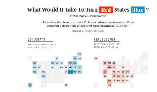 For months, VDARE.com Editor Peter Brimelow has badgered me to write on how Donald Trump could win the general election if nominated. Until recently, I was very skeptical. As VDARE.com has pointed out for years, no amount of GOP pandering will ever win a significant share of blacks and Hispanics. And I thought the white vote was too divided to outbalance the increasing minority vote. But a recent article on Nate Silver’s FiveThirtyEight.com [What Would It Take To Turn Red States Blue? By Aaron Bycofffe and David Wasserman, December 3, 2015] has (no doubt unintentionally) changed my mind.