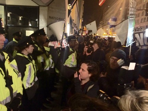 One member of the “D.C. counter-inaugural welcoming committee” commented anonymously that housing space for 1,000 hundred visiting radicals, in both church halls and houses, had been organized by their group alone. New York anarchists are raising funds to rent whole buses to attend. And, as historic anti-fascist mass protest dictates, there are plans for a large black bloc—a spectacle both intentionally threatening and anonymizing. The expectation of altercation with Trump supporters who will also descend on DC is high.[Anti-Fascists Will Fight Trump’s Fascism in the Streets, by Natasha Lennard, January 19, 2017. Emphasis added].