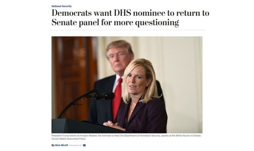 Then the entire Senate gets to vote, reportedly before Thanksgiving.[ Democrats want DHS nominee to return to Senate panel for more questioning, by Nick Miroff, Washington Post, November 10, 2017]