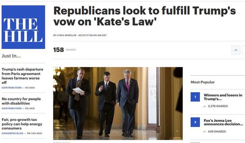 The increasing willingness of the President’s team to seek the advice of Senator Tom Cotton, who seems to have succeeded Jeff Sessions as the greatest immigration patriot in the upper chamber, is also an encouraging sign [As Trump’s Coach, Senator Cotton Provides Policy to Match Rhetoric, by Maggie Haberman and Matt Flegenheimer, New York Times, June 8, 2017]. Most importantly, Trump himself is taking the strategic offensive, championing his success on these issues. [‘These deaths were preventable’: Trump urges Senate to pass ‘Kate’s Law,’ Fox Insider, July 1, 2017]