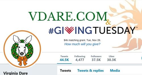 The VDARE.com #GivingTuesday Open House will feature did feature VDARE.com editor Peter Brimelow and John Derbyshire talking and raising a glass or two. Also questions from listeners happened, et cetera.