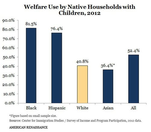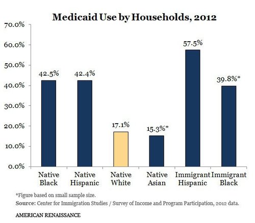 As mass Third-World immigration continues, the US will have an ever-burgeoning dependent class of non-whites. Black voters will be joined by increasing number of Hispanic voters in their support for more handouts. When they vote in 2016, a majority of black and Hispanic households are likely to be on welfare–just as they were in 2012. Arguments about freedom and limited government will mean nothing to them. Obamacare is just the beginning.