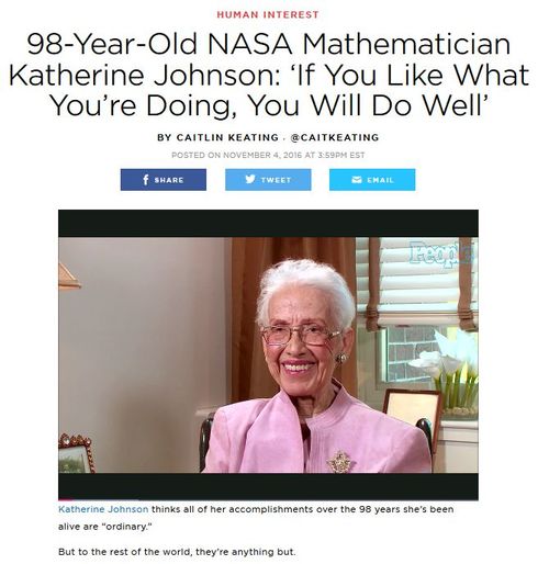 All of which is quite a heavy burden to lay on the life story of Hidden Figures’ protagonist, the extremely light-skinned Katherine Johnson. Indeed, when she received the Presidential Medal of Freedom, it was hard to tell if she was actually black.(See picture at right) [98-Year-Old NASA Mathematician Katherine Johnson: ‘If You Like What You’re Doing, You Will Do Well,’ by Caitlin Keating, People, November 4, 2016].