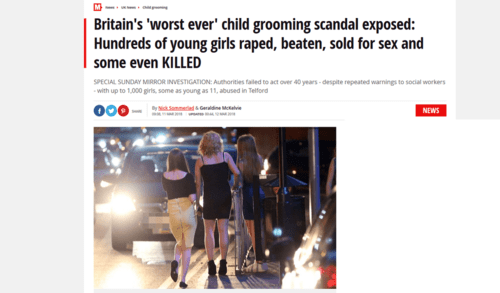 The indifference of the British government and Main Stream Media to what is now an epidemic of abuse throughout the country cannot be overstated. Sure, some British publications, including the Telegraph are investigating the story [Telford MP calls for inquiry into ‘extremely serious and shocking’ abuse in the town, by Harriet Agerhold, Independent, March 11, 2018]. But thus far the state-owned BBC has barely mentioned it. (One online article from BBC Shropshire, with no mention of “Asians”, Muslims or Pakistanis: Investigating child sex exploitation in Shropshire By Andy Giddings BBC Shropshire, March 11, 2018. ) Instead, the BBC is far more interested in spreading wild conspiracy theories about Vladimir Putin, who is poised to win another term as president of Russia.