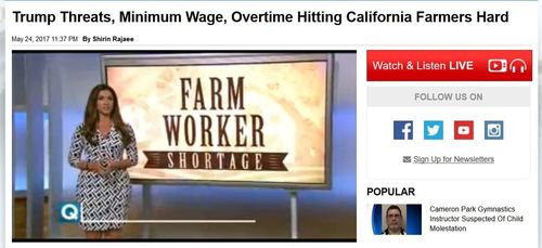 Trump Threats, Minimum Wage, Overtime Hitting California Farmers HardThe fake news narrative: "The state has been struggling with this farm labor shortage issue for years, but it’s gotten to a point where farmers are fed-up."By Shirin Rajaee, May 24, 2017