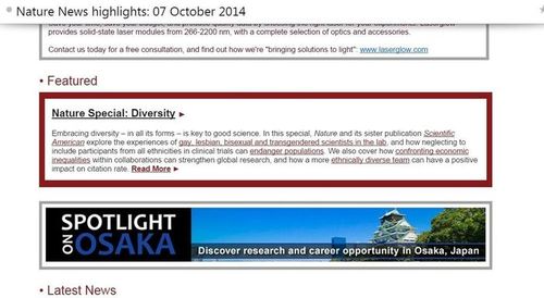 It's getting pretty thick out there. I'm on Nature's mailing list and here is a clip from their latest newsletter, GAG. It's a special Nature/Scientific American collaboration and hits all the diversity bases.