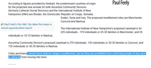170 refugees are being dumped on Manchester, Concord, and Nashua in New Hampshire from a half dozen countries. The locals of course have no say in this. One of the countries is Bhutan, which last I checked is perfectly stable. [Paul Feely's City Hall: NH refugee coordinator says 170 refugees heading to Manchester, NH Union-Leader, June 4. 2016]