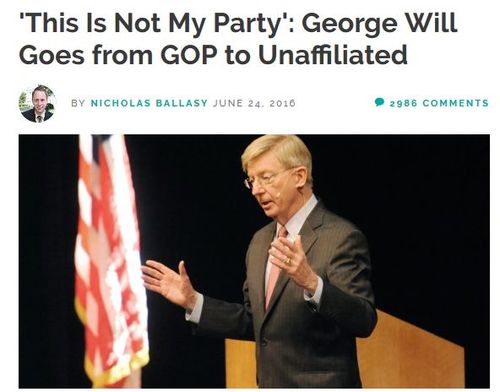 Does George Will really believe that the best way to advance conservatism is to elect Hillary Clinton?['This Is Not My Party': George Will Goes from GOP to Unaffiliated, By Nicholas Ballasy, PJMedia, June 24, 2016]