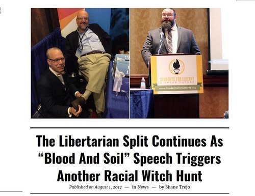 "In other words, blood and soil and God and nation still matter to people. Libertarians ignore this at the risk of irrelevance."The speech was met with vehement opposition from the “libertarian” left. But many libertarians came to defend the speech, such as Tom Woods, The Liberty Conservative, Liberty Hangout, bionic mosquito, and Reformed Libertarian. Some of the same anti-Deist “libertarians” also attacked Tom Woods for his LvMI speech. See The Libertarian Split Continues As “Blood And Soil” Speech Triggers Another Racial Witch Hunt, by Shane Trejo, The Liberty Conservative, August 1, 2017