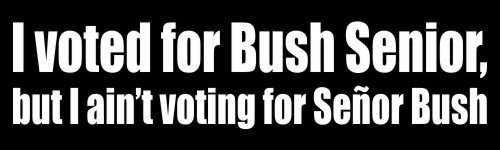 "I voted for Bush Senior, but I ain't voting for Señor Bush!"