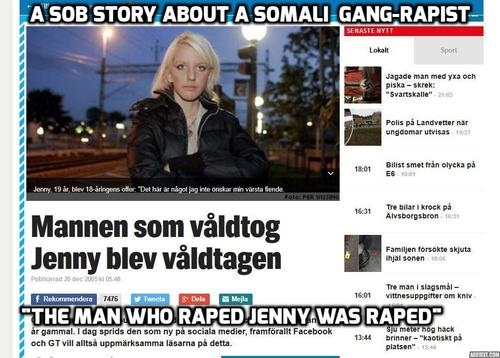 Not sure if there is truth to the article, but the Swedish journalist closes by writing that Jenny 'feels sorry' for her Muslim rapist, who was raped in prison: