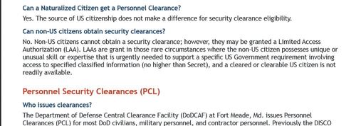 "In general, most employers look for candidates that hold an active Department of Defense (DoD) collateral clearance or a blanket TS/SCI-cleared (Top Secret / Sensitive Compartmented Information) individual that has successfully completed a counterintelligence (CI) or full-scope polygraph (FSP)."My husband worked as the director of technology for a major defense contractor. He was regularly pestered by the Dean of a nearby university to give the grad students more contract work. Most of the Asian grad students were foreign-born and did not qualify for security clearance-level work.