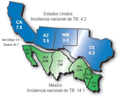 James Fulford writes: The school mentioned above as exposed to TB is 92 percent Hispanic, and 67 percent "English learner. " That is to say, it has a large number of Mexican immigrant students. In Mexico, they know that there's a TB problem, and who's causing it—the map above is from an International Community Foundation report titled Tuberculosis en la Región Fronteriza Tijuana-San Diego.