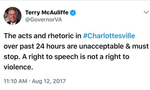 — Governor Ralph Northam (@VAGovernor73) August 12, 2017