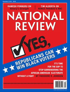 I thought you'd be interested to know that the author of National Review's cover story this week is none other than Theodore R. Johnson [Email him] a black writer who has previously advocated giving blacks 5/3 of the vote. Very conservative.