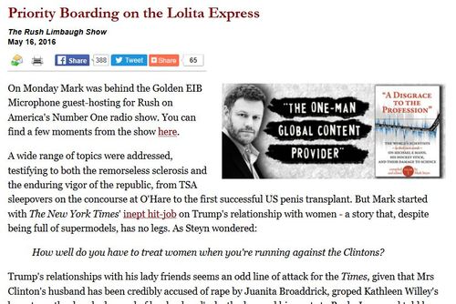 He said that Mitt Romney, who has run and lost twice, would like to run again but doesn't want to leave the house. Hence the search for someone to run in his place. Steyn believes that will be very difficult now that polls show a dead heat between Trump and Clinton, with 87% of Republicans supporting Trump. (See Priority Boarding on the Lolita Express and The Chief Commissar of Municipal Zoning.) At times he sounds as if he reads VDARE.com, which we know he must from the VDARE tabs on the laptop screen shot he posted.