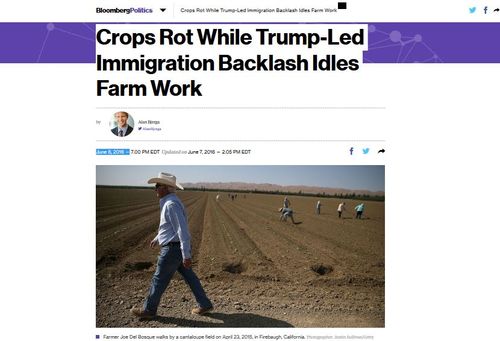 Bjerga gives only one example: "Carlos Castaneda watched one-quarter of his Napa cabbages rot in three California fields this spring..." There's a Napa cabbage in my refrigerator now. Perhaps the price was too low to justify harvesting them, even paying (or not paying) illegal alien wages. There certainly has not been a shortage.