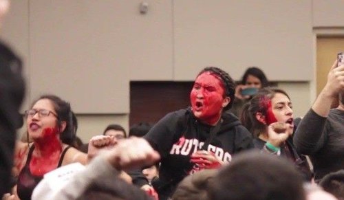 On Tuesday night, it was time not to be nice. Protesters from the Black Lives Matter movement sat in on the lecture, screaming, chanting, and interrupting the courteous and patient Milo throughout his speech. At one point, after a somewhat stinging remark about “safe spaces” from Milo, a young white woman in the audience shouted, “This man represents hatred,” and then covered her face with red paint. The audience reacted, a shouting match ensued, and then the Black Lives Matter protesters got up again and began to chant the name of their organization.