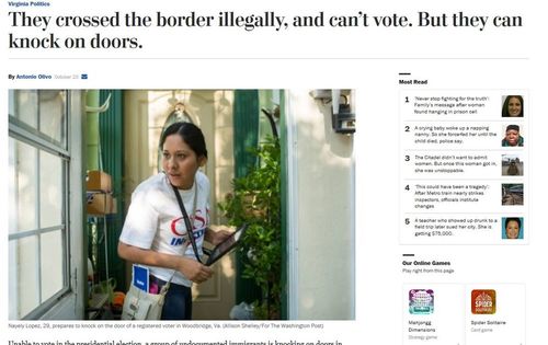 For those familiar with the word “chutzpah,” defined as “audacity both for good and bad,” a recent article in in The Washington Post may well fit that definition. In a lengthy story (with photos), it describes the effort of an illegal alien who is being used by Clinton operatives to canvass Hispanic neighborhoods to get out the vote for candidate Clinton. [They crossed the border illegally, and can’t vote. But they can knock on doors.” The Washington Post, October 23, 2016)