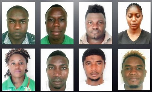 The Cameroon athletes missing from the Commonwealth Games Village on Queensland's Gold Coast. (LtoR, top row to bottom row): Fotsala Simplice, Fokou Arsene, Ndzie Tchoyi Christian, Yombo Ulrich, Ndiang Christelle, Minkoumba Petit David, Fouodji Arcangeline Sonkbou and Matam Matam Olivier Heracles.